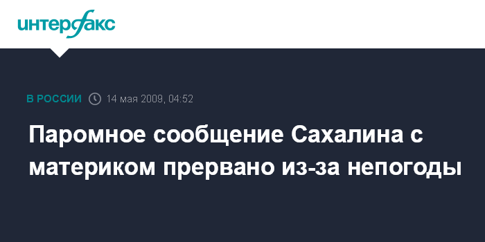 Южно-Сахалинск. 14 мая. ИНТЕРФАКС-ДАЛЬНИЙ ВОСТОК - Паромная переправа Ванино - Холмск, связывающая Сахалин с материком, приостановила работу в связи с очередным циклоном, который вызвал шторм на море.