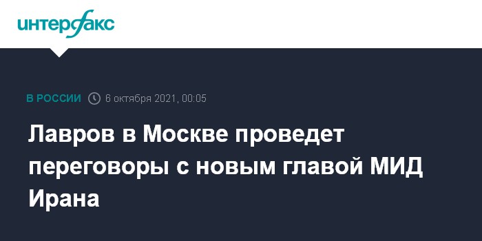 "6 октября в Москве состоятся переговоры министра иностранных дел Российской Федерации Лаврова с его иранским коллегой Амир Абдоллахианом. Встреча станет продолжением регулярного диалога глав внешнеполитических ведомств двух стран. Последний раз они общались по телефону 9 сентября 2021 года", - говорится в сообщении, опубликованном на сайте МИД РФ.