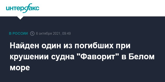 Москва. 6 октября. INTERFAX.RU - К утру среды спасатели нашли в Белом море тело одного из троих пропавших без вести после крушения судна "Фаворит", сообщили в пресс-службе МЧС. Поиски пропавших возобновили, когда рассвело.