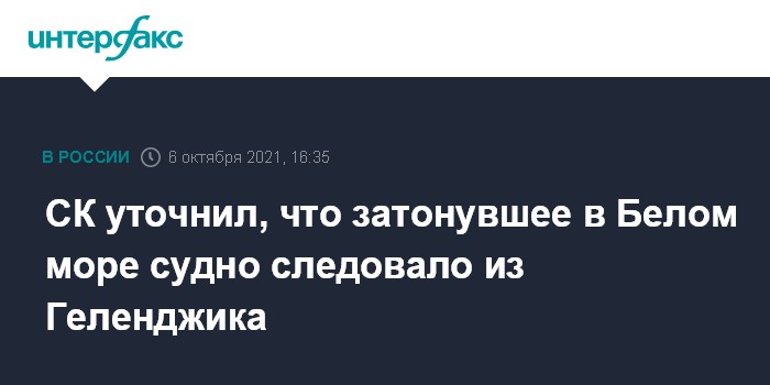 СК уточнил, что затонувшее в Белом море судно следовало из Геленджика