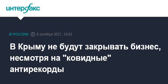 Москва. 6 октября. INTERFAX.RU - Глава Крыма Сергей Аксенов заявил, что не планирует вводить запрет на работу предприятий, несмотря на ежедневный рост числа новых случаев коронавируса.