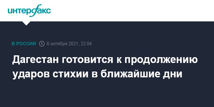 Москва. 6 октября. INTERFAX.RU - Продолжение осадков в Дагестане прогнозируется еще в течение 2-3 дней, при необходимости аварийные бригады будут привлекаться из соседних регионов, сообщил в эфире телеканала "Россия 24" (ВГТРК) заместитель председателя правительства Дагестана Манвел Мажонц.