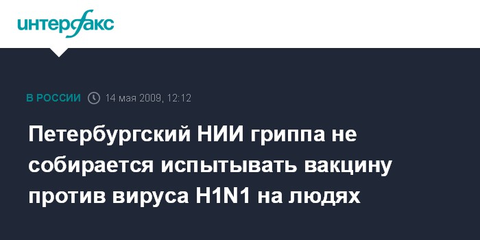 Москва. 14 мая. INTERFAX.RU – Научно-исследовательский институт гриппа РАМН не намерен испытывать вакцину против вируса H1N1 на волонтерах.