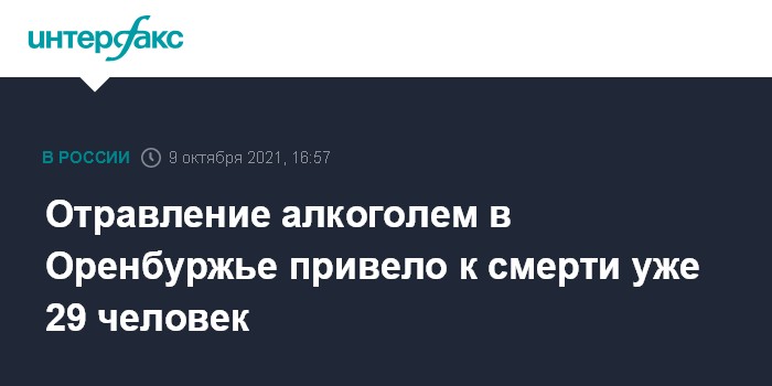 Москва. 9 октября. INTERFAX.RU - Число умерших в результате отравления контрафактным алкоголем в Оренбургской области увеличилось до 29, сообщила в субботу пресс-служба СКР со ссылкой на официального представителя ведомства Светлану Петренко.