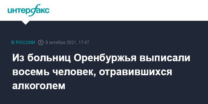 Москва. 9 октября. INTERFAX.RU - Медики в Оренбургской области начали выписывать из больниц пациентов после отравления суррогатным алкоголем, сообщается в телеграм-канале регионального правительства в субботу.