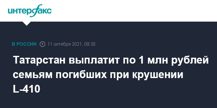 Москва. 11 октября. INTERFAX.RU - Правительство Татарстана приняло постановление об оказании материальной помощи семьям погибших и пострадавшим при крушении самолета L-410 в Мензелинском районе республики, документ опубликован пресс-службой главы республики в понедельник.