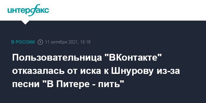 Пользовательница "ВКонтакте" отказалась от иска к Шнурову из-за песни "В Питере - пить"