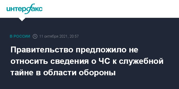 Москва. 11 октября. INTERFAX.RU - Сведения о чрезвычайных ситуациях и опасных для экологии процессах запретят относить к служебной тайне в области обороны, следует из проекта постановления правительства РФ.