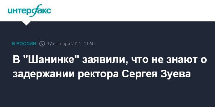 Москва. 12 октября. INTERFAX.RU - В Московской высшей школе социальных и экономических наук ("Шанинка") заявили, что не владеют информацией о возможном задержании ректора Сергея Зуева, но сказали, что вуз сотрудничает со следствием по делу экс-замминистра просвещения Марины Раковой.