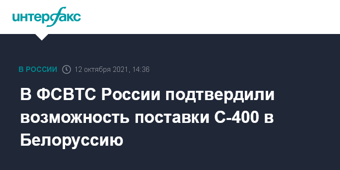 Москва. 12 октября. INTERFAX.RU - Россия оперативно рассмотрит вопрос о поставке Белоруссии систем ПВО С-400 "Триумф", как только поступит соответствующая заявка, заявил "Интерфаксу" во вторник директор Федеральной службы по военно-техническому сотрудничеству (ФСВТС) России Дмитрий Шугаев.