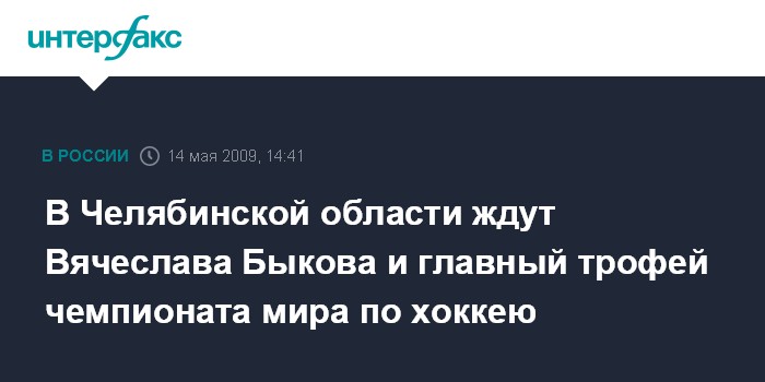Москва. 14 мая. INTERFAX.RU - Губернатор Челябинской области Петр Сумин пригласил главного тренера сборной России по хоккею Вячеслава Быкова посетить регион и привезти Кубок мирового первенства.