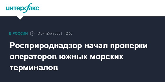 Москва. 13 октября. INTERFAX.RU - Росприроднадзор начал проверки операторов морских терминалов на юге России, сообщила журналистам глава ведомства Светлана Радионова.
