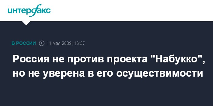 Россия не против проекта "Набукко", но не уверена в его осуществимости