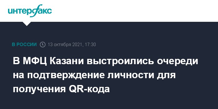 В Минцфиры Татарстана "Интерфаксу" сообщили, что в курсе происходящего. "К нам поступают сообщения, что у офисов МФЦ образовались большие очереди из желающих подтвердить учетную запись на Госуслугах, чтобы получить QR-код о вакцинации. В связи с этим мы давали сегодня пояснения, в том числе на сайте, о том, что подтвердить учетную запись, можно не выходя из дома - через мобильное приложение банков", - сказал собеседник агентства.