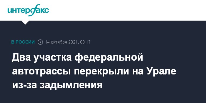 Москва. 14 октября. INTERFAX.RU - Движение на двух участках федеральной автодороги "Екатеринбург-Шадринск-Курган" полностью перекрыли из-за задымления.