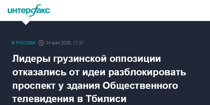 Москва. 14 мая. INTERFAX.RU - Лидеры грузинской оппозиции временно отказались от инициативы разблокирования проспекта Костава у здания Общественного телевидения в Тбилиси, поскольку она не нашла поддержки у сторонников оппозиции.