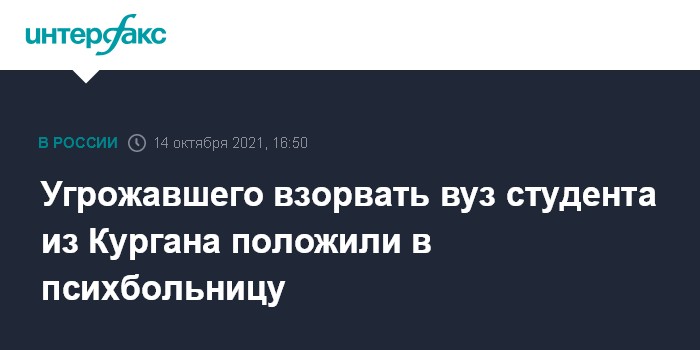 Угрожавшего взорвать вуз студента из Кургана положили в психбольницу