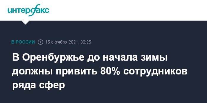 Москва. 15 октября. INTERFAX.RU - Заместитель главного государственного санитарного врача по Оренбургской области вынес постановление об обязательной вакцинации от коронавируса отдельных категорий граждан.
