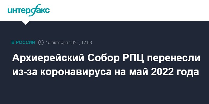 В Москве за год умерло в три раза больше священников и монахов, чем годом ранееЧитать подробнее"В связи со сложной эпидемической обстановкой перенести проведение Архиерейского Собора на май 2022 года, определив датами его заседаний 26-29 мая 2022 года", - говорится в журналах заседания Синода, прошедшего в пятницу в онлайн-режиме.