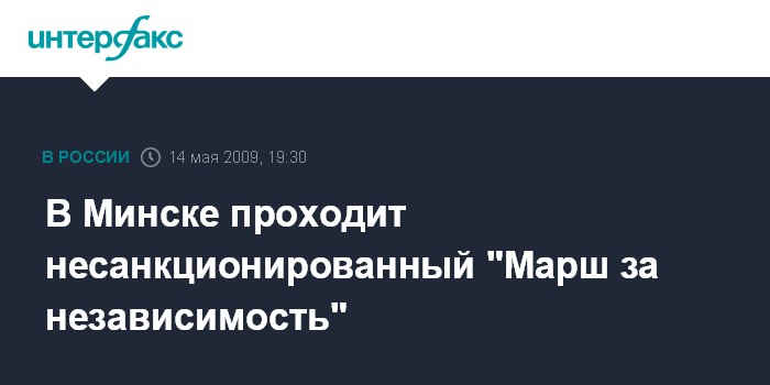 Минск. 14 мая. INTERFAX.RU - Несанкционированная уличная акция "Марш за независимость" началась на Октябрьской площади в центре Минска, передает корреспондент агентства "Интерфакс-Запад".