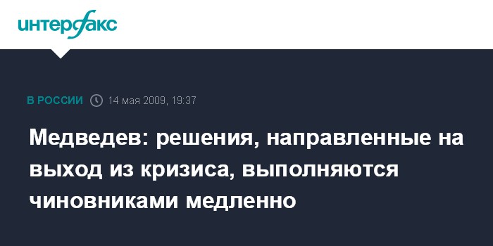 Киров. 14 мая. INTERFAX.RU - Президент РФ Дмитрий Медведев критикует чиновников за медлительность при выполнении решений, в том числе направленных на выход из кризиса.