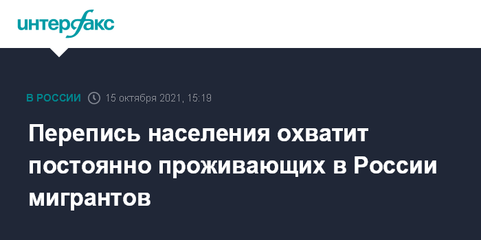 Москва. 15 октября. INTERFAX.RU - Постоянно проживающие в России трудовые мигранты примут участие в переписи населения, поскольку перепись учитывает всех, кто живет в стране, сообщил заместитель руководителя Росстата Павел Смелов.