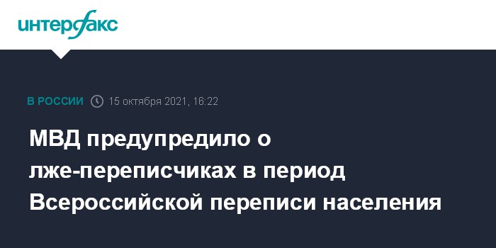 Москва. 15 октября. INTERFAX.RU - В рамках проведения Всероссийской переписи населения МВД России предупреждает граждан о появлении мошенников, прикидывающихся переписчиками.