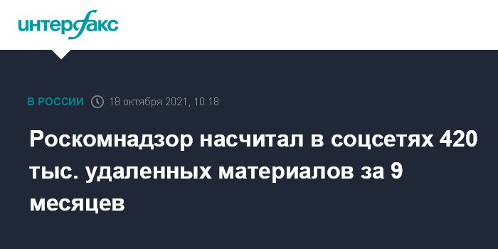 Роскомнадзор насчитал в соцсетях 420 тыс. удаленных материалов за 9 месяцев