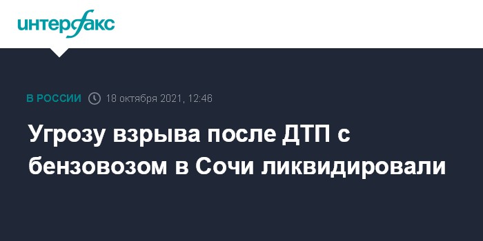 Угрозу взрыва после ДТП с бензовозом в Сочи ликвидировали