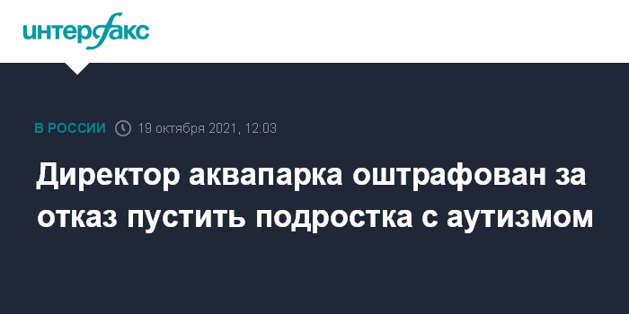 Директор аквапарка оштрафован за отказ пустить подростка с аутизмом