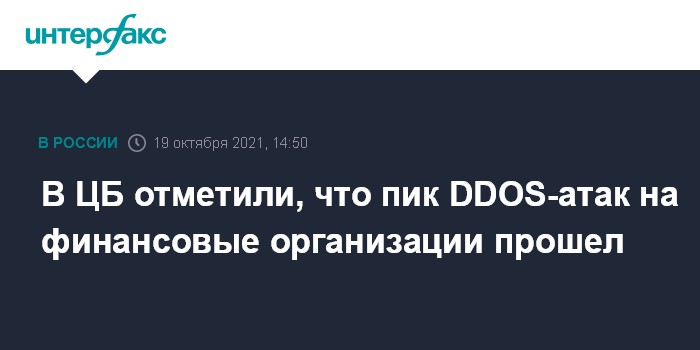 Москва. 19 октября. INTERFAX.RU - Регулятор отмечает окончание пика DDOS-атак на финансовые организации, сообщил заместитель председателя Банка России Герман Зубарев.