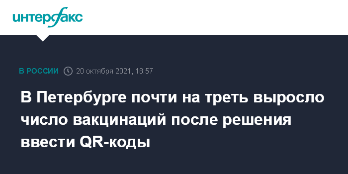 В Петербурге почти на треть выросло число вакцинаций после решения ввести QR-коды
