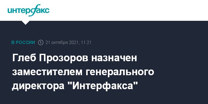 Москва. 21 октября. INTERFAX.RU - Глеб Прозоров назначен заместителем генерального директора АО "Интерфакс".