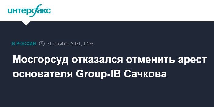 Москва. 21 октября. INTERFAX.RU - Мосгорсуд отказался отменить решение об аресте основателя Group-IB Ильи Сачков, обвиняемого в госизмене. Об этом "Интерфаксу" в суде.