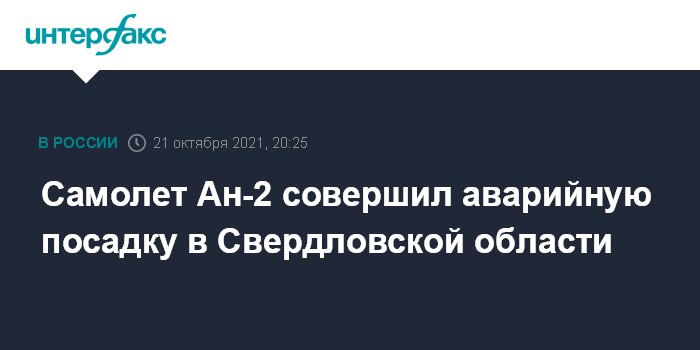 Москва. 21 октября. INTERFAX.RU - Самолет Ан-2, наблюдавший в четверг за лесными пожарами, совершил аварийную посадку под Екатеринбургом, сообщил "Интерфаксу" информированный источник.