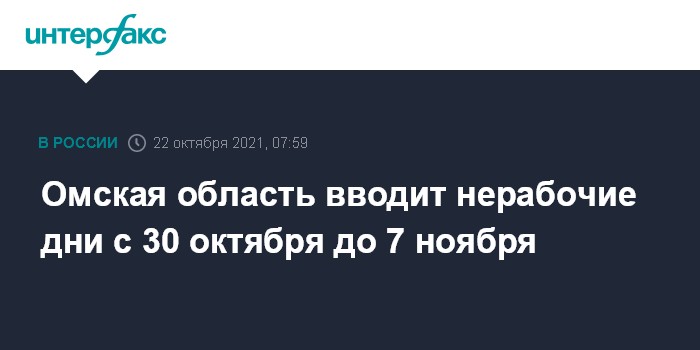 Омская область вводит нерабочие дни с 30 октября до 7 ноября