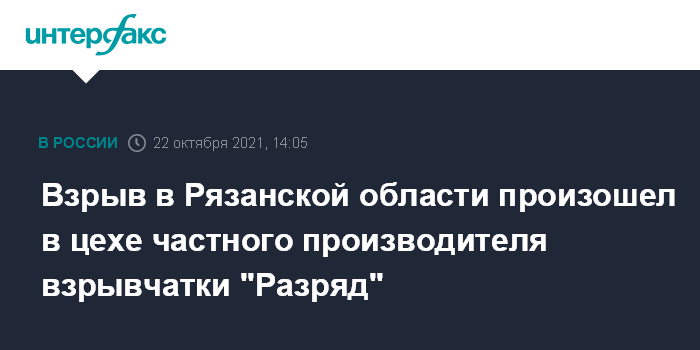 Взрыв в Рязанской области произошел в цехе частного производителя взрывчатки "Разряд"