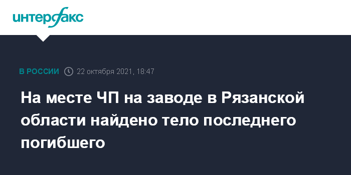 На месте ЧП на заводе в Рязанской области найдено тело последнего погибшего