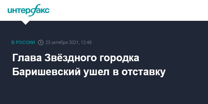 "22 октября 2021 года глава городского округа Звёздный городок Московской области Е.В.Баришевский сложил полномочия по собственному желанию", - говорится в сообщении.