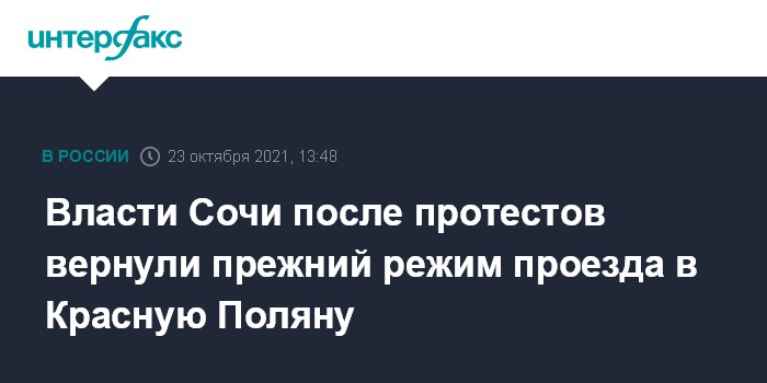 Москва. 23 октября. INTERFAX.RU - Власти Сочи и дорожные службы курорта намерены с 23 октября вернуть прежний режим проезда из Адлера в Красную Поляну и обратно, сообщили "Интерфаксу" в пресс-службе администрации города.