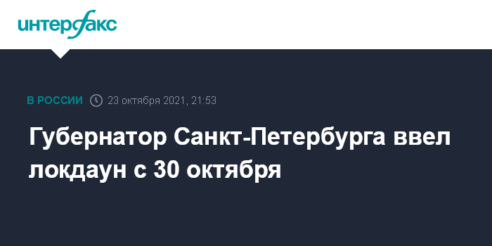 Губернатор Санкт-Петербурга ввел локдаун с 30 октября