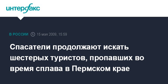 Как сообщили агентству "Интерфакс-Поволжье" в пресс-службе МЧС России по Пермскому краю, пропавшими по-прежнему числятся шестеро туристов, среди них одна девушка. Пятеро - жители Перми, один пропавший - житель Свердловской области.