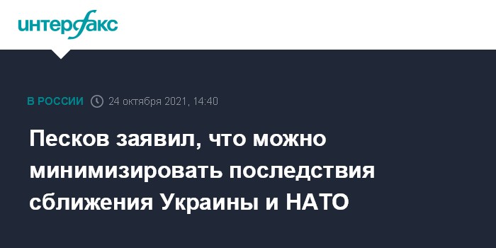 Москва. 24 октября. INTERFAX.RU - Россия не может помешать вступлению Украины в НАТО, но может минимизировать последствия таких шагов, заявил пресс-секретарь президента РФ Дмитрий Песков.