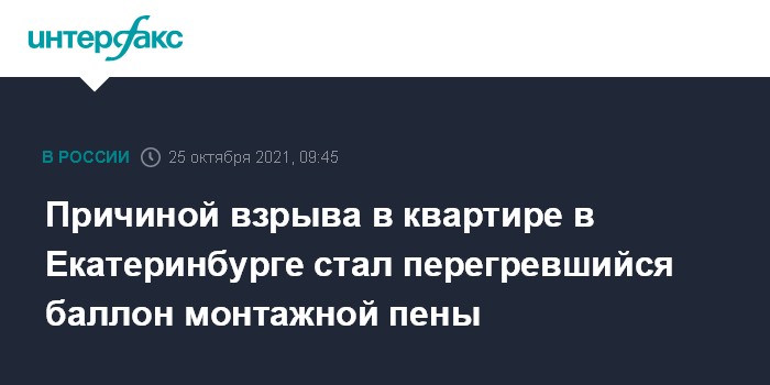 Причиной взрыва в квартире в Екатеринбурге стал перегревшийся баллон монтажной пены