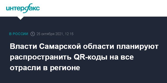 Москва. 25 октября. INTERFAX.RU - Режим работы по QR-кодам станет обычной практикой в Самарской области, сообщил глава региона Дмитрий Азаров в прямом эфире на телеканале "Россия-24".