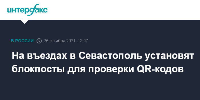 Москва. 25 октября. INTERFAX.RU - Губернатор Севастополя Михаил Развожаев распорядился развернуть блокпосты на въездах в город для проверки QR-кодов у въезжающих в течение нерабочей недели.