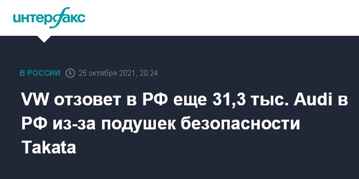 VW отзовет в РФ еще 31,3 тыс. Audi в РФ из-за подушек безопасности Takata