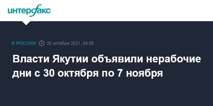 Власти Якутии объявили нерабочие дни с 30 октября по 7 ноября