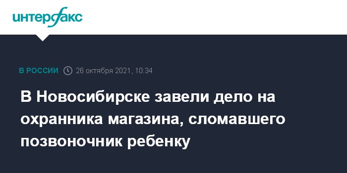 В Новосибирске завели дело на охранника магазина, сломавшего позвоночник ребенку
