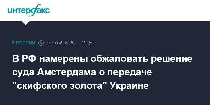 "Это решение (суда Амстердама - ИФ) абсолютно политизированное, потому что "скифское золото" происхождением из Крыма. Крым является субъектом РФ, и оно должно быть возвращено на место его постоянного хранения", - сказал Джабаров.